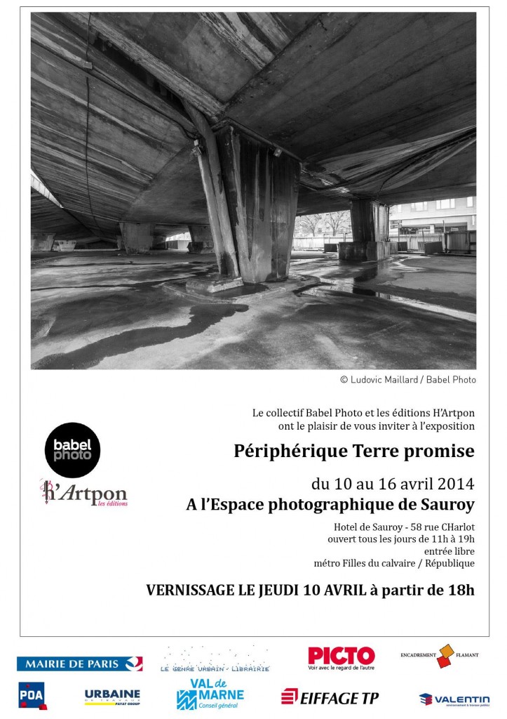Rejoignez notre collectif de photographe Babel Photo pour notre exposition « Périphérique, Terre promise »! J’y présenterai quelque un des tirages de ma série Typologie du Béton. Vernissage Jeudi 10 avril, à partir de 18h jusqu’à 23h et l’exposition continue jusqu’au 16 avril, à l’Espace photographique de Sauroy. Entrée libre. Ouvert de 11h à 19h. Vous pouvez nous informer…