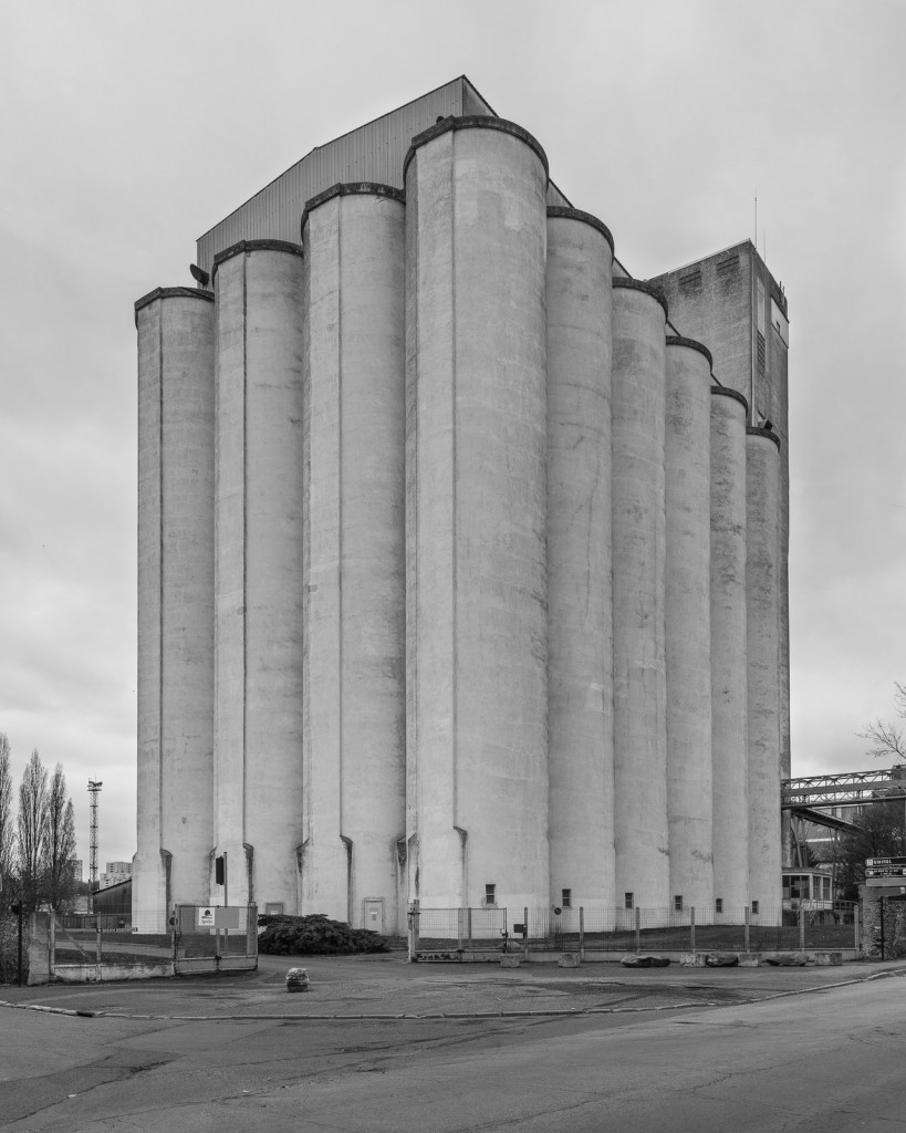 Le faisceau de silos de la minoterie des Grands Moulins de Corbeil-Essonnes. Image de la série «verticale de l’agriculture, 2ème partie » de Ludovic Maillard, sur l’architecture agricole le long de la méridienne verte. The…
