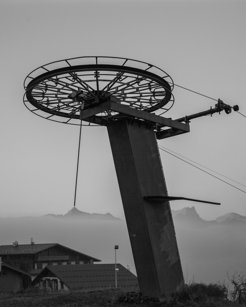 Un remonte-pente à la station de ski de Saint Gervais les Bains dans les Rhone-Alpes, France A ski lift at the Saint Gervais les Bains ski resort in the Rhone-Alpes, France #paysage #landscape…
