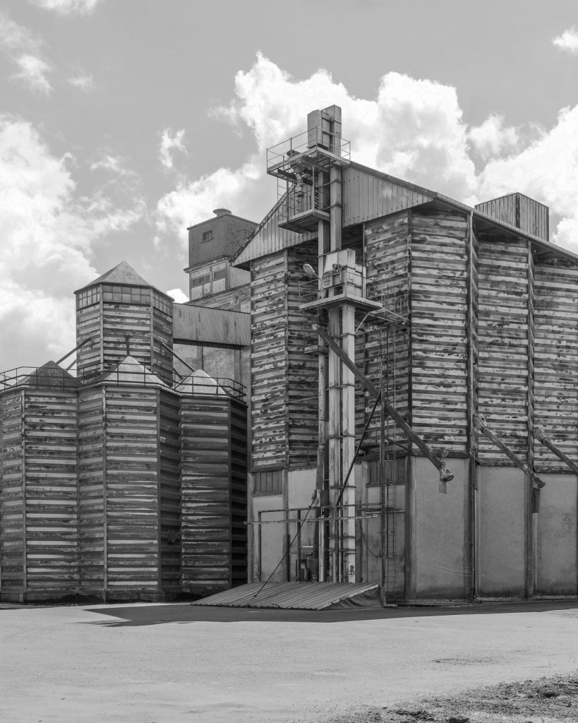 La coopérative agricole de Saint-Amand-Longpré, dans le le Loir-et-Cher. Agricultural Cooperative of Saint-Amand-Longpré in the Loir-et-Cher. #architecture #agriculture #metal #blackandwhite #tirage #print