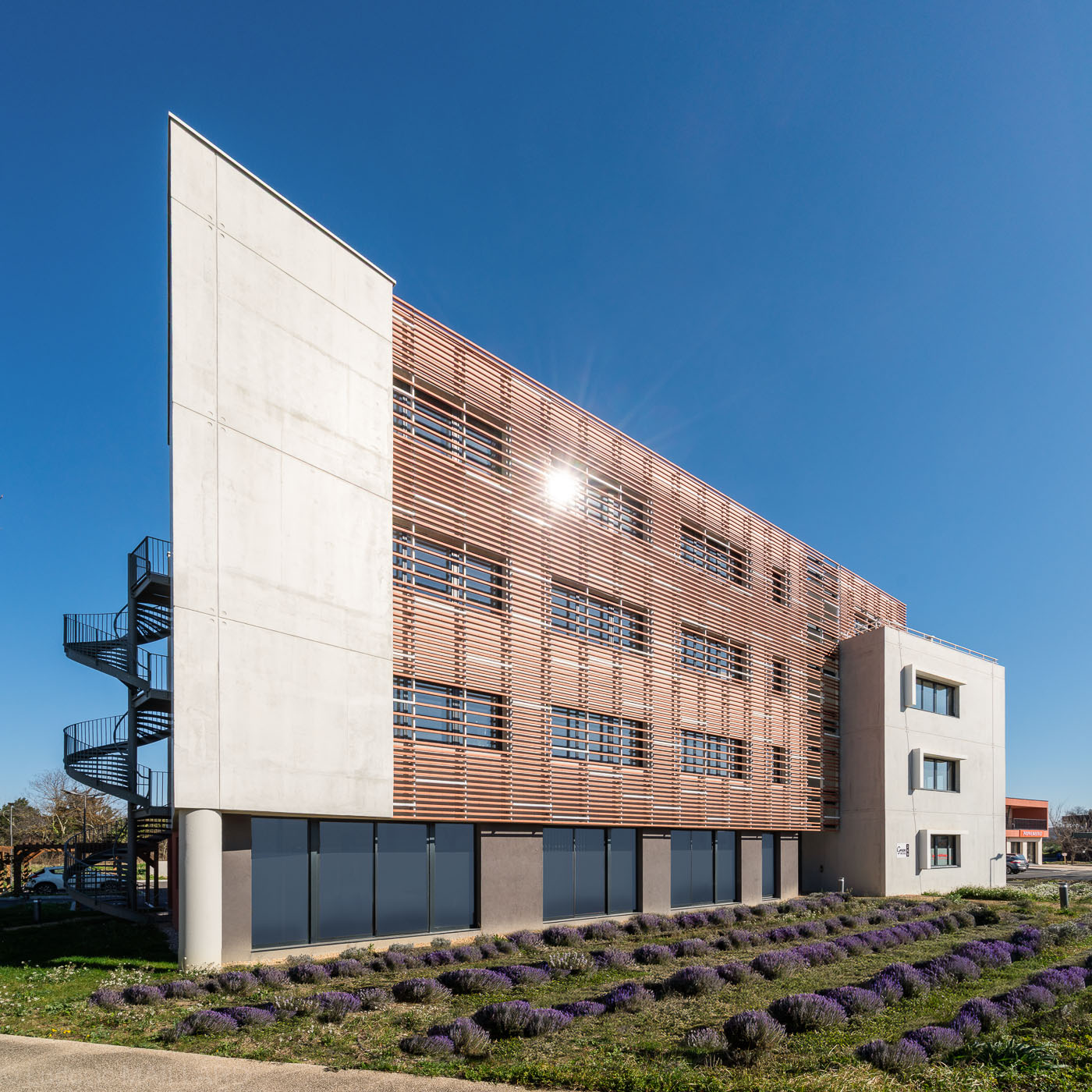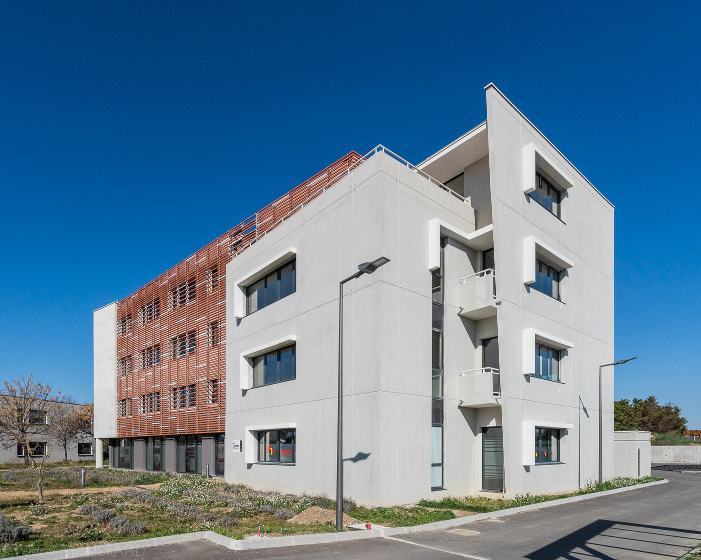 Bureaux Greenwork Avignon par Envol promoteur. Copyright photographe d'architecture Ludovic Maillard, SAIF 2026 http://ludovicmaillard.com